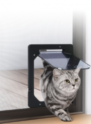 ネジで簡単に取付けられる網戸専用のペットドア