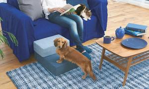 ウレタンフォームとポリエステル、塩化ビニル樹脂でできたクッション性のあるドッグステップです。 ゆるやかな傾斜で小型犬でも問題なく登れますし、ステップは幅広なので大きな犬も楽々登れます。 広げてマットとしても利用できますし、2台を組み合わせて3段ステップにも使うことができます。ある程度の重さと滑り止めによって、勢いよく登ってもずれることがありません。 他にはないきれいな色合いも特徴で、インテリアにマッチすること間違いなしです。