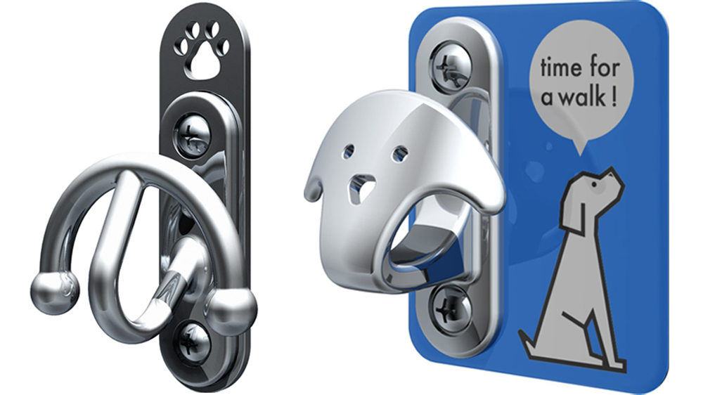リードをかけるステンレス製の『リードフック』。散歩や買い物帰りの足拭きなどに便利です。