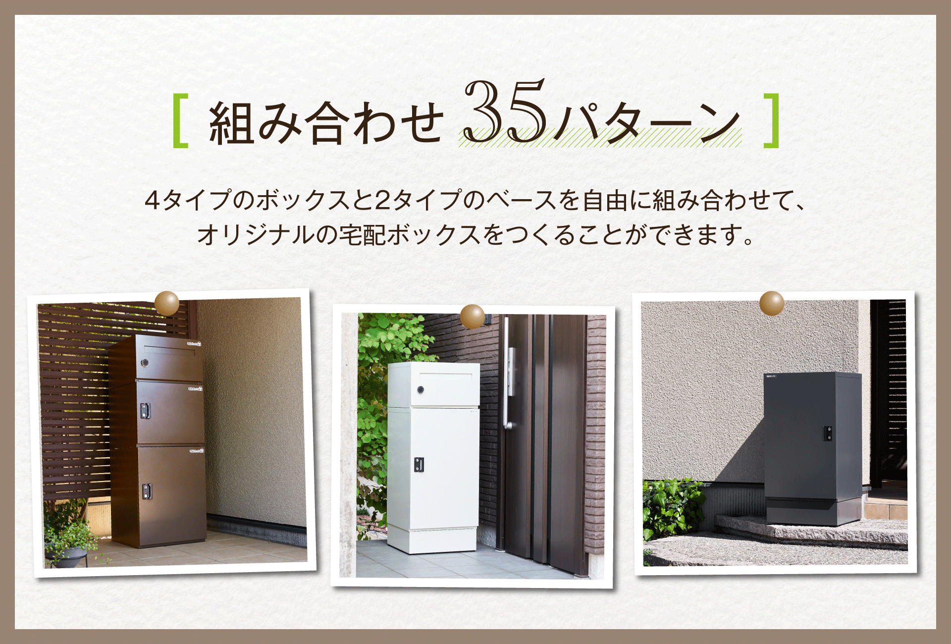 35パターンの組み合わせができる宅配ボックス 宅配KEEPER tumiki