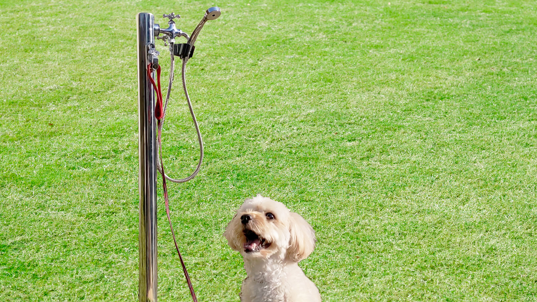 水栓柱とドッグポールを1本に!リードフック付水栓柱